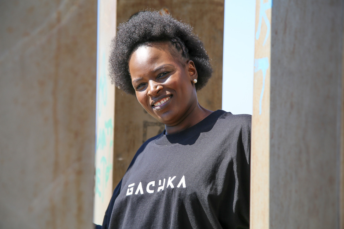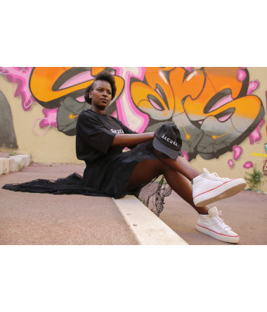 T-shirt noir oversize unisexe avec broderie gachka blanche